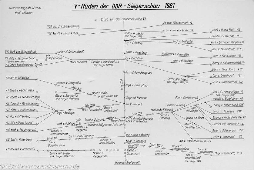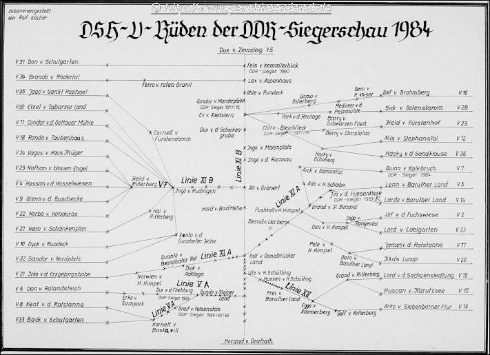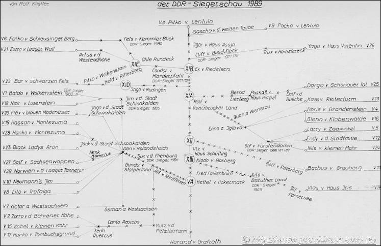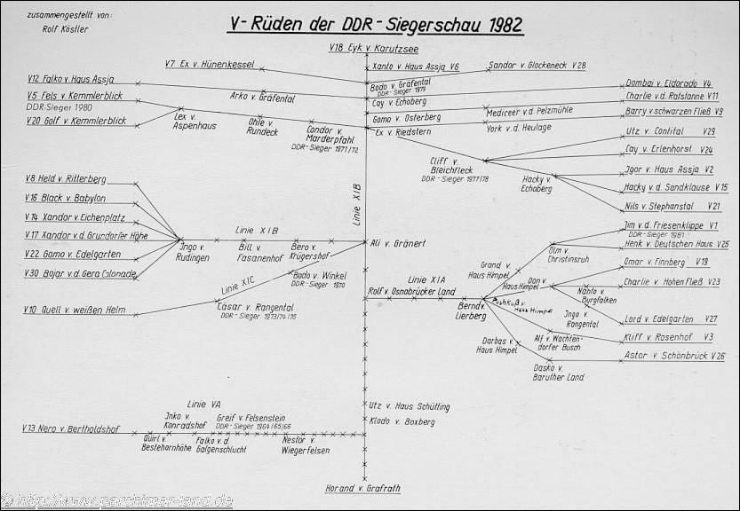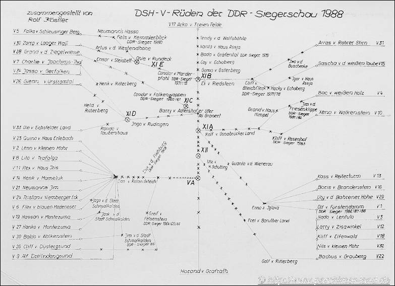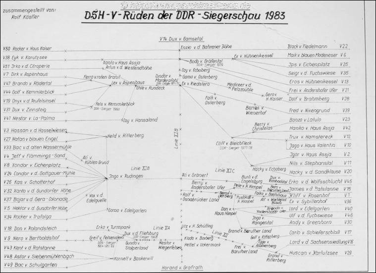 Blutlinienpläne von DSH - V- Rüden der DDR - Siegerschauen